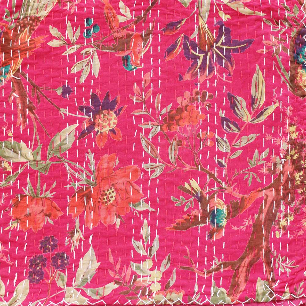 Our range of throws uses the technique of ‘Kantha’ – a running stitch, one of the oldest forms of traditional embroidery. These throw are 100% printed cotton with a self—coloured backing and are embellished with lines of running stitches. A standard blanket double, they are perfect for sofas or as bedspreads, bringing an injection of colour, print and texture to a room.