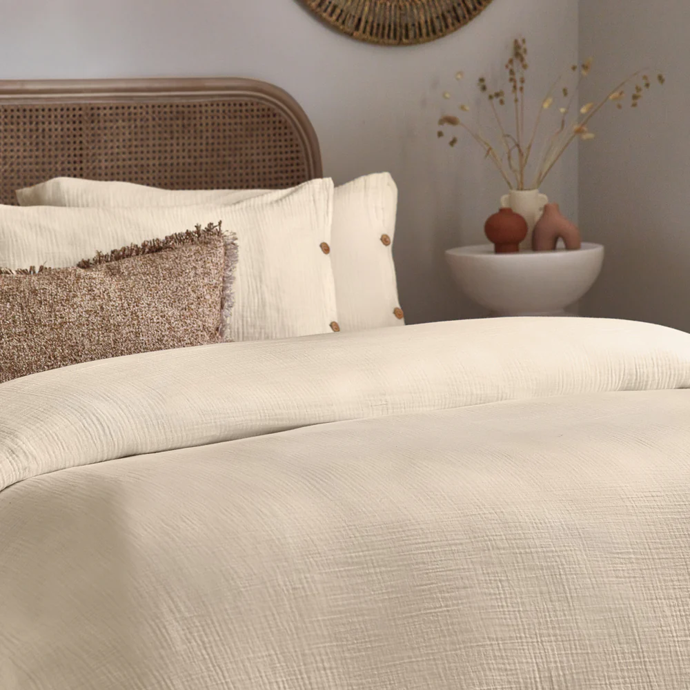 100% Cotton Muslin Luxury Natural Duvet Cover and Matching Pillow Cases