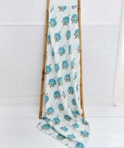 This beautiful, printed throw will bring an elegant botanical style to a bed or sofa. Large-scale stylised flowers with fan-shaped petals in turquoise and aqua tones and dark green stems are depicted against a fresh white background.