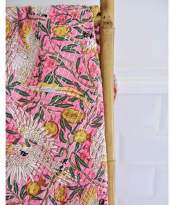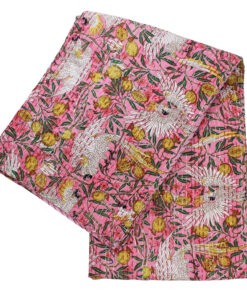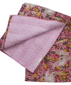 100% Pink Tropical Bird & Pomegranate Print Kantha Throw 140x225cms