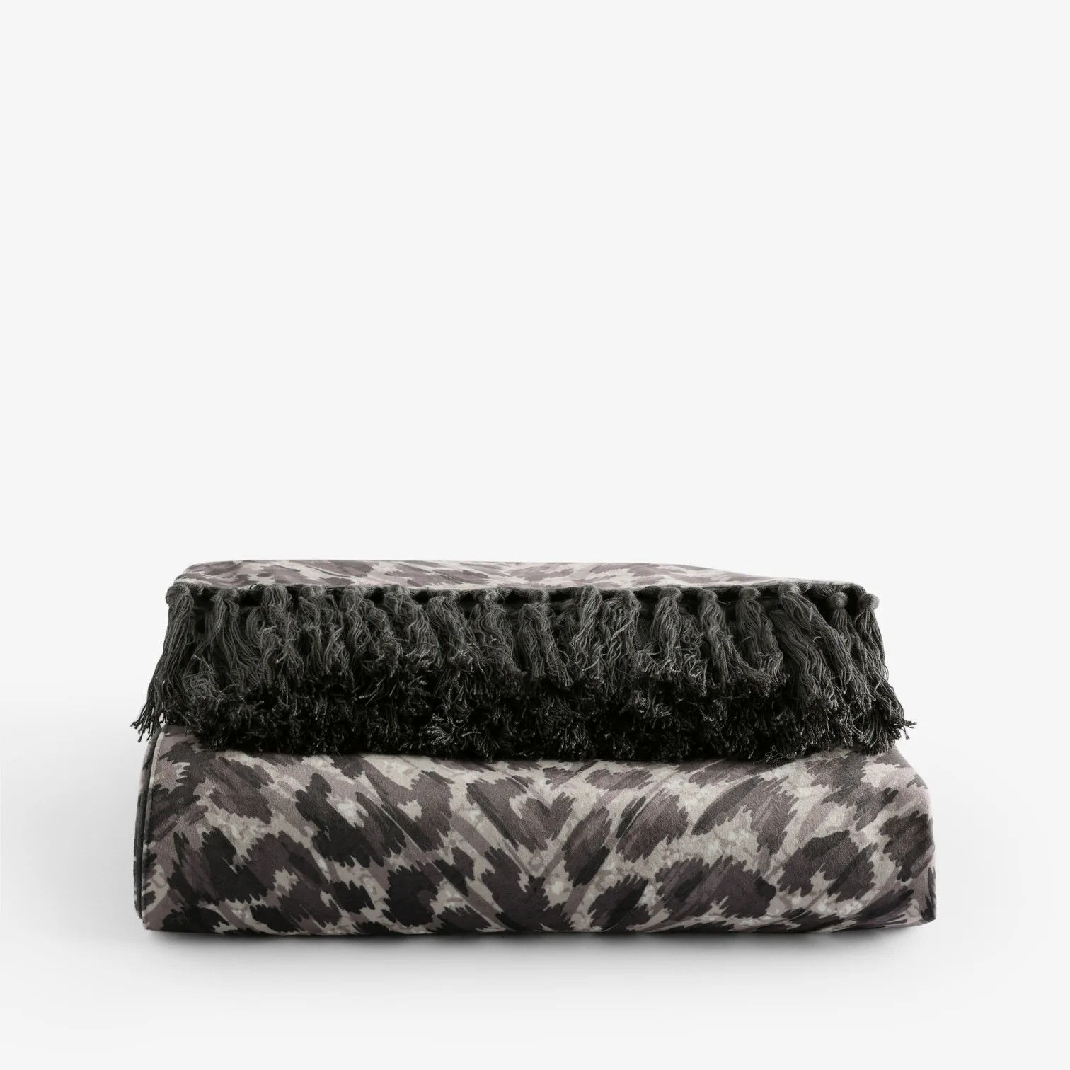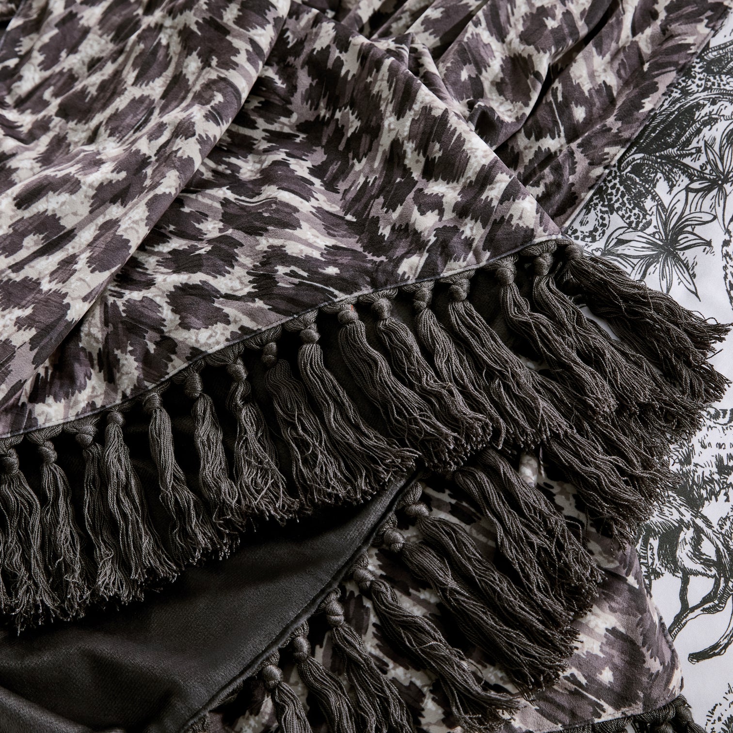Wrap yourself in the rich essence of the African savannah with the Pokot throw. Made from plush velvet, this striking piece features a classic leopard print on one side and a plain reverse. Its cultural and enchanting design is beautifully finished with a delicate fringe trim on two sides, bringing both comfort and an element of refined, wild beauty into the home